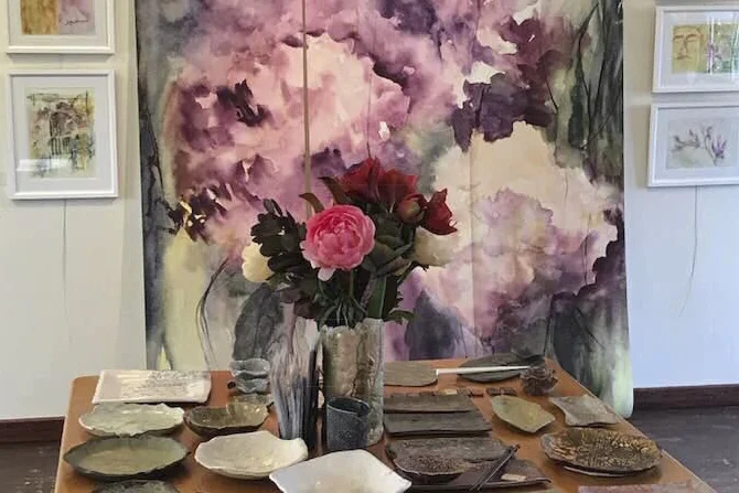 The exhibit is entitled Textures & Hues — Watercolours & Pottery... read more